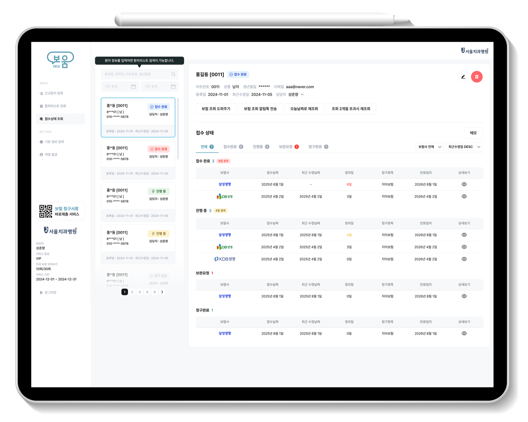 보험 업무 때문에 원무팀은 하루 몇 시간씩 잡혀 있고, 같은 실수로 서류를 다시 내보내고, 보험 지원 문의를 일일이 응대하느라 진짜 중요한 일은 자꾸 뒤로 밀립니다.