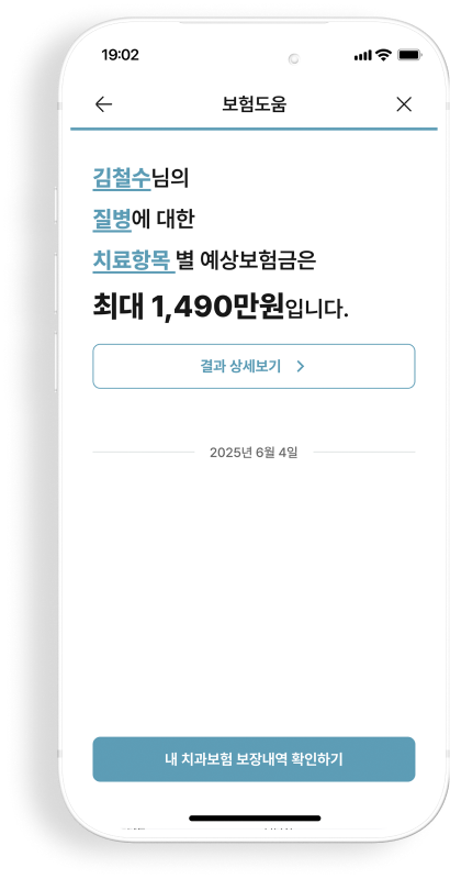 입력하신 증상·치료명을 기준으로 AI가 내 보험 약관을 대신 읽고, 보장 가능성과 예상 보험금을 한 번에 계산해 줘요.